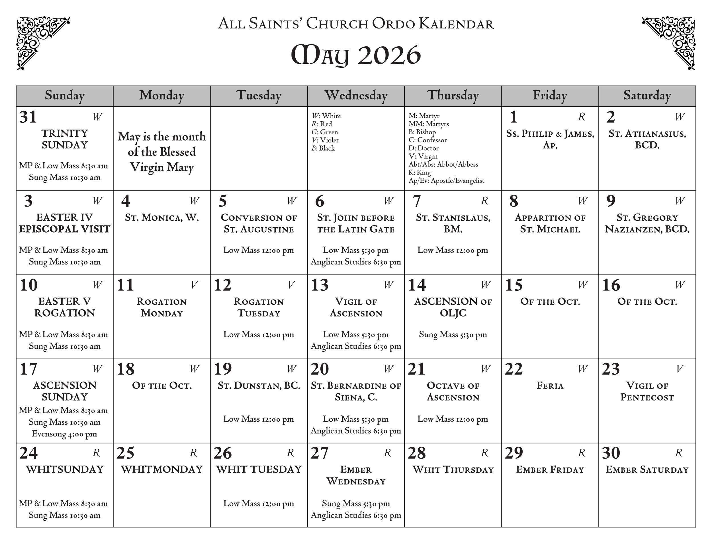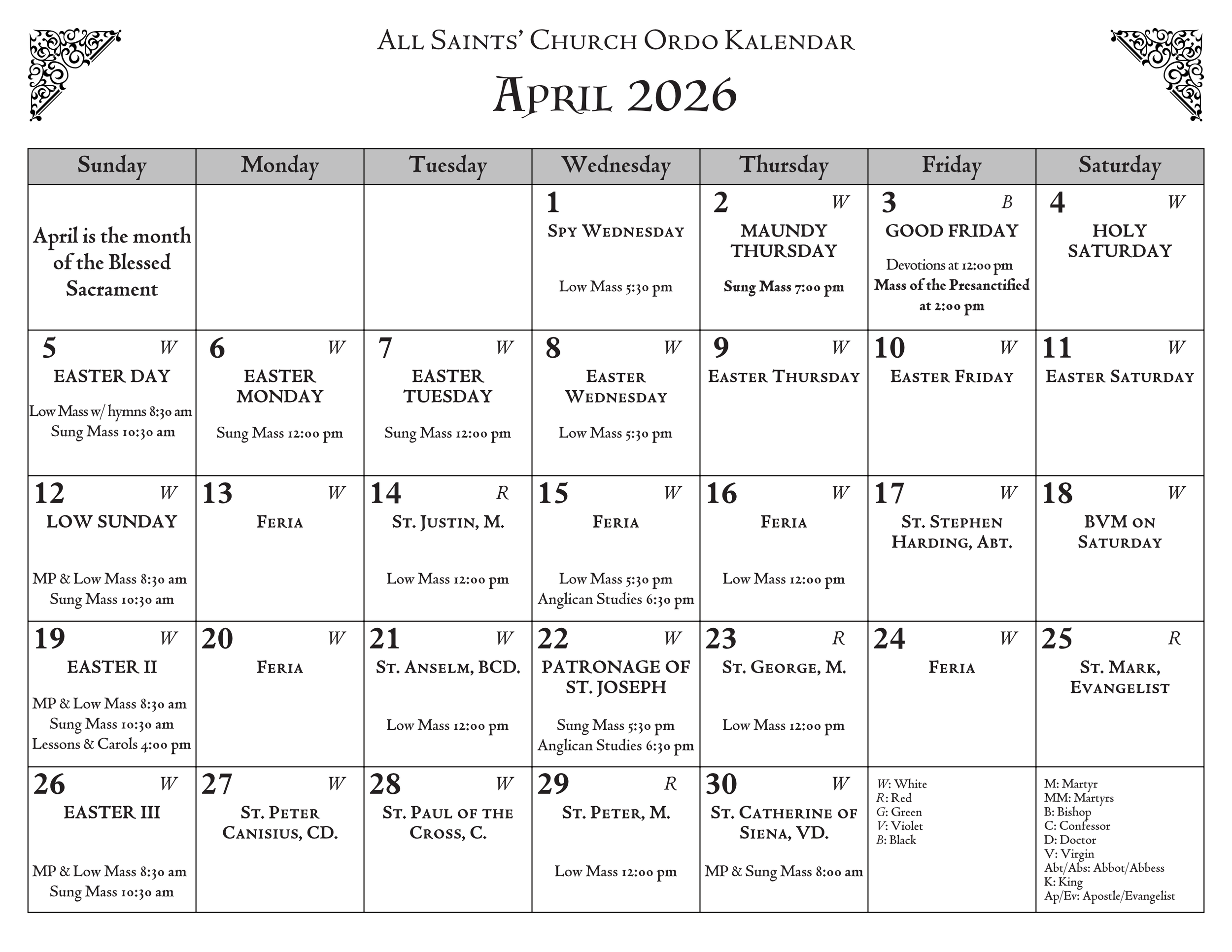 4:00 pm: Evensong (as announced, see monthly calendar)