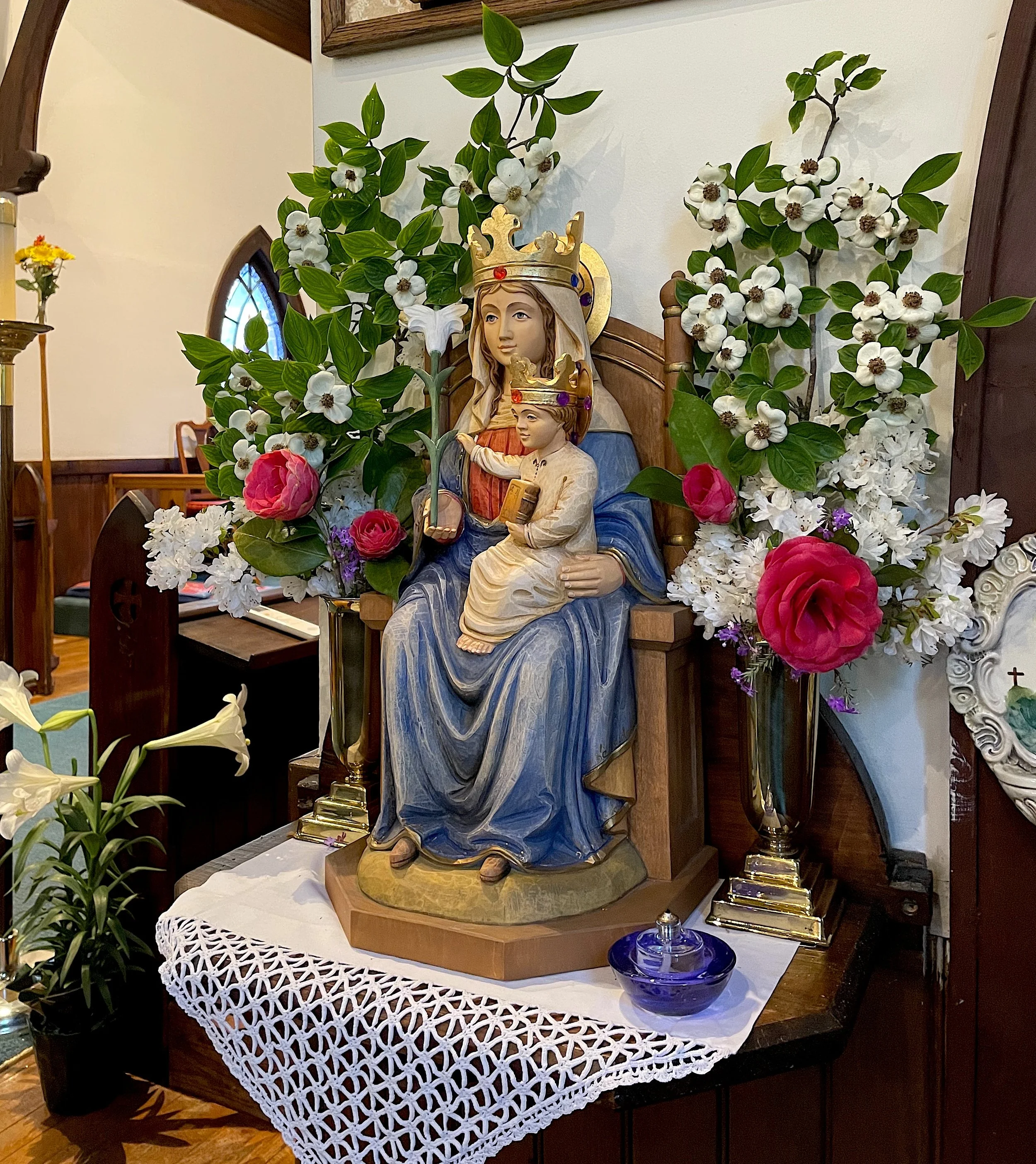 When we say “worship,” we mean the adoration of the Blessed Trinity—the Father, the Son, and the Holy Spirit—by the very means Jesus himself gave us: The Holy Eucharist, commonly called The Mass or The Holy Communion. In the Mass we come to Calvary, made participants in Christ’s sacrifice and resurrection through the gift of his true Body and Blood. In the Mass, earth joins heaven as we receive the grace of Jesus’ real presence for the healing of body and soul.